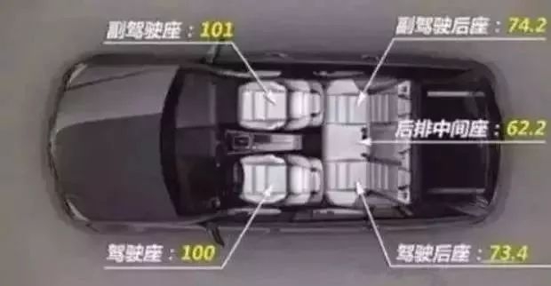 危险系数从高到底依次为:副驾驶座>驾驶座>副驾驶后座>驾驶后座>后排中间座