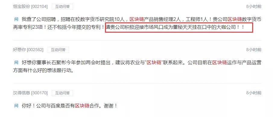 区块链爆红!A股投资者2天抛460个问题,7公司回应,这家公司亮了……