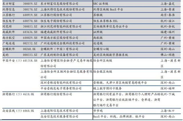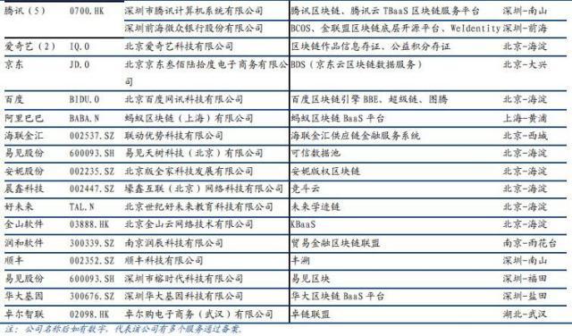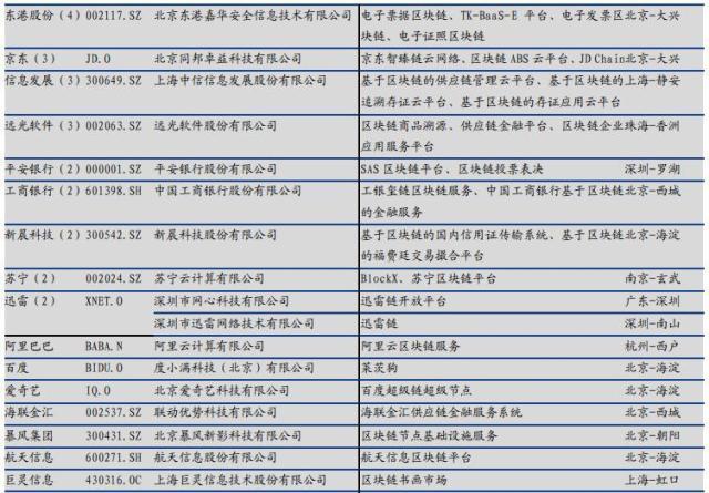 网信办两批区块链信息服务备案中上市公司参与情况。 数据来源:国盛证券