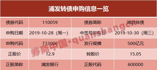 浦发银行此次即将发行的500亿元可转债,简称“浦发转债”,信用等级为AAA级,将于25日启动网下申购,28日启动网上申购。