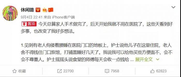 前段时间,拥有460万粉丝的微博大V@休闲璐,在深夜发了一条微博,引发400万人关注,2万多人分享,6万多条点赞。