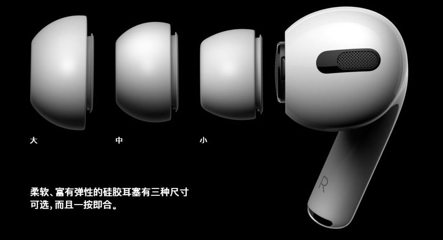 作为入耳式的耳机AirPods Pro 配备了3个不同尺寸的硅胶耳塞用户无需担心自己的耳型是否合适且安装很方便,按上去就可以了