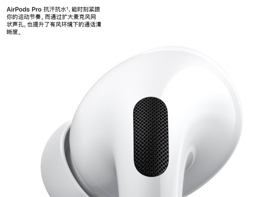 另外,AirPods Pro 还具有等级达到 IPX4 的抗水抗汗功能可以提供全方位和角度的泼溅防水保护