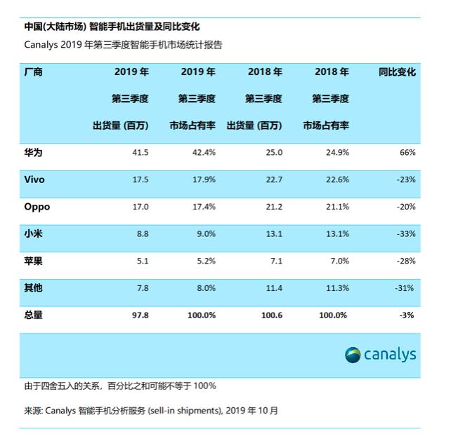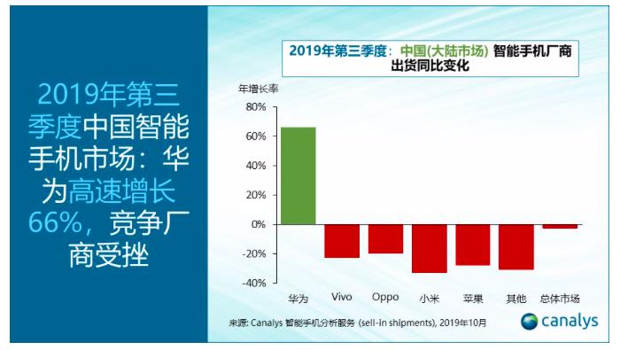 Canalys报告:Q3中国智能手机市场华为增长66% 市场份额达42%
