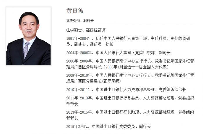 在此之前,黄良波担任中国进出口银行党委委员、副行长。以下为其简历: