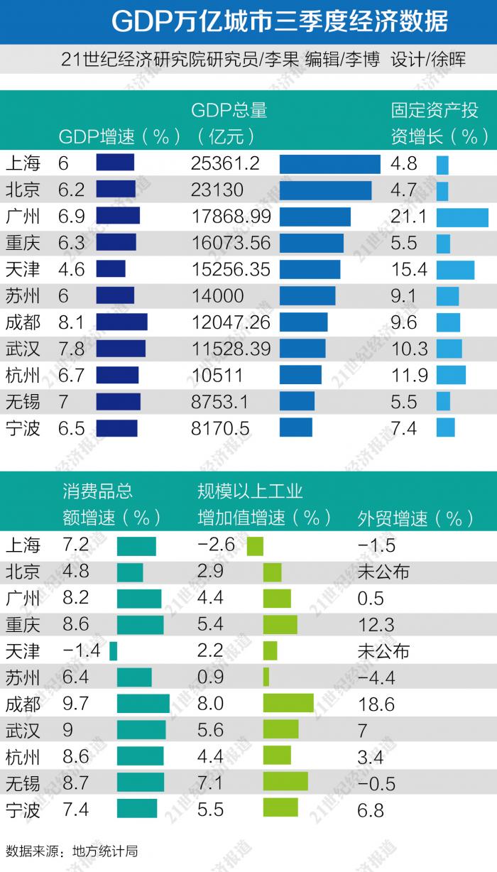 GDP万亿城市三季报:京沪GDP已超2万亿 成都增速8.1%排第一