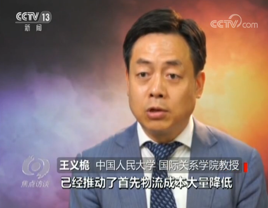 中国人民大学国际关系学院教授 王义桅:前不久世界银行有一个报告,讲“一带一路”到现在已经推动了首先物流成本大量降低,大概1.1到2.2个百分比,如果“一带一路“这样实施下去,可以将3200万人脱贫,摆脱中等贫困,世界经济增长贡献率在1.9%左右。这是中国开放推动全球开放经济体系的一个重要贡献,为什么“一带一路”这么多国家积极响应,也是看到了新的开放,看到了开放更高的形态和开放的新的使命。