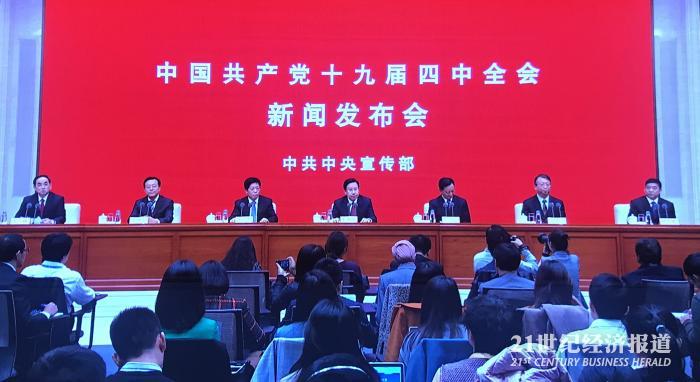 11月1日,中共中央宣传部举行中国共产党十九届四中全会新闻发布会。