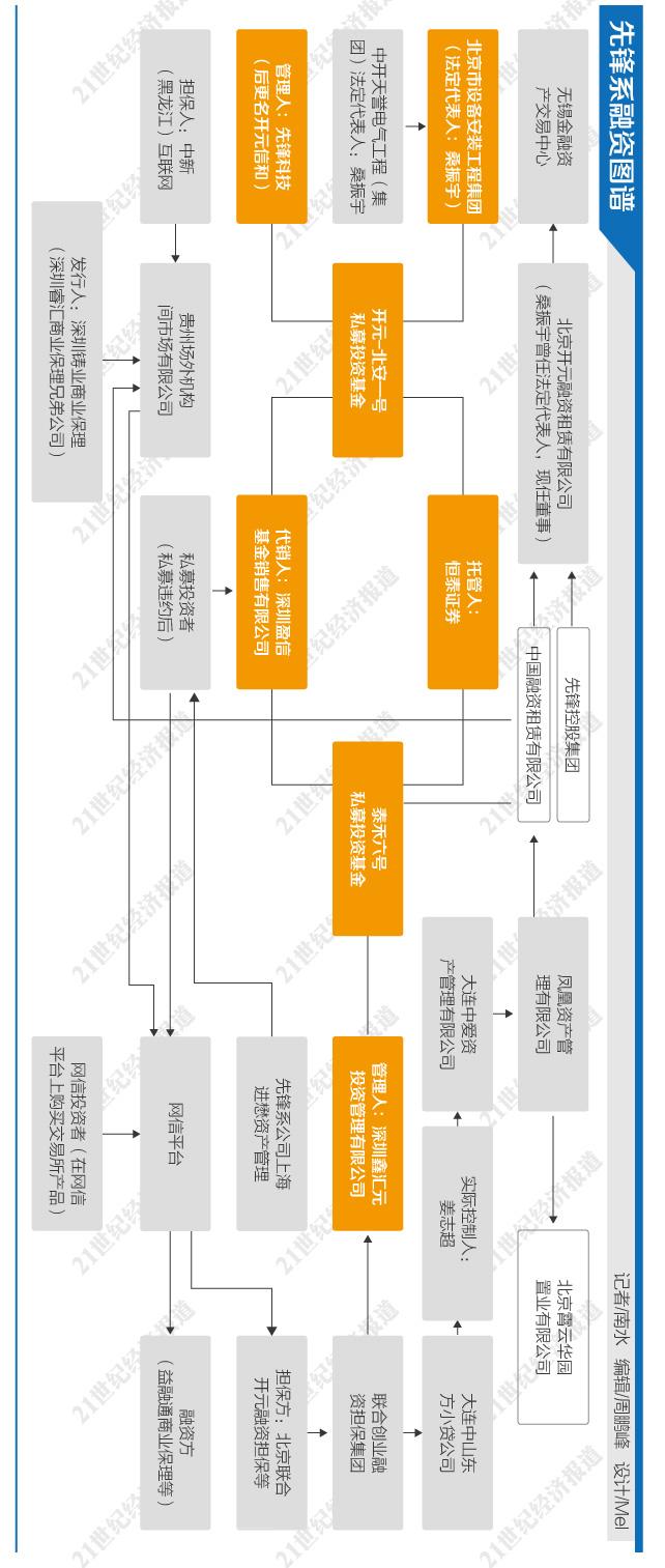 不同于草根P2P,先锋系曾获得支付、券商、私募等金融牌照或备案,布局较广。但种什么因,得什么果。 近日,21世纪经济报道记者采访多位先锋系投资者,深入研究许多合同材料,以小见大,剖析先锋系线下线上融资链条疑云,问题显而易见。