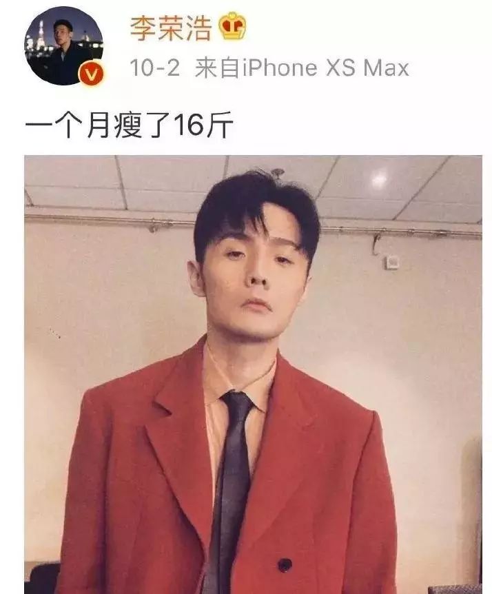 之前,歌手李荣浩曾在微博上晒出一张自己的减肥照,并骄傲地宣布: