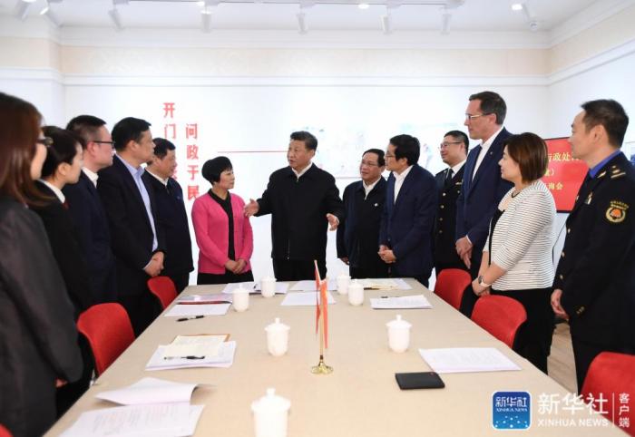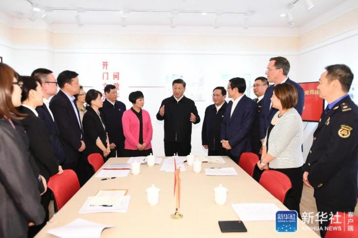 临近傍晚,习近平来到长宁区虹桥街道古北市民中心考察调研。古北社区居住着来自50多个国家和地区的居民。习近平听取社区开通社情民意直通车、服务基层群众参与立法工作等情况介绍,并同正在参加立法意见征询的社区居民代表亲切交流。他强调,你们这里是全国人大常委会建立的基层立法联系点,你们立足社区实际,认真扎实开展工作,做了很多接地气、聚民智的有益探索。人民代表大会制度是我国的根本政治制度,要坚持好、巩固好、发展好,畅通民意反映渠道,丰富民主形式。