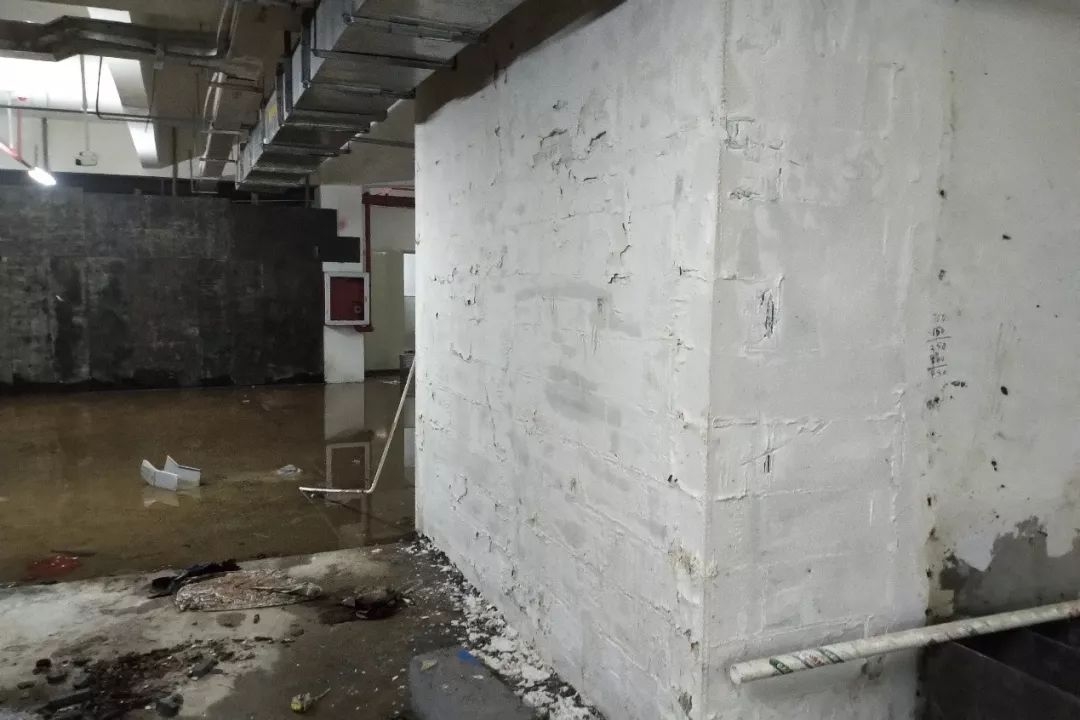 (在卓越星源小区的地下室,有明显的积水和渗水现象)