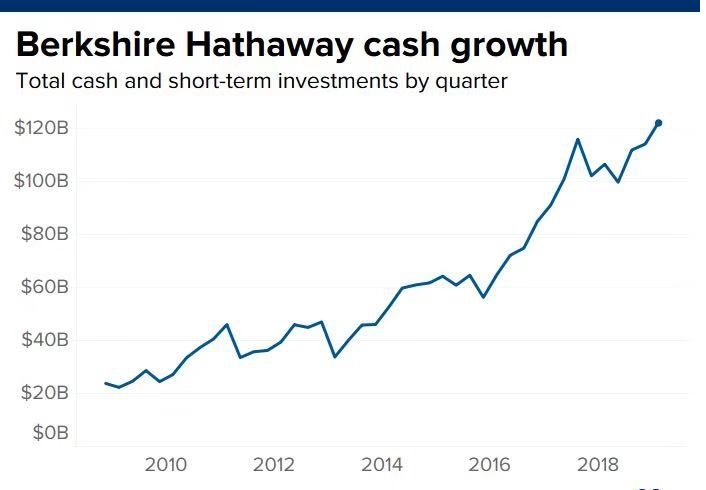 从这份报告来看,1280亿美元(约合9007亿元人民币)的现金储备,成为各界关注的焦点。股神不断持续攀升的现金储备,让投资者紧张不安。这些现金储备已经占据伯克希尔5287.69亿美元市值的24.2%,也就是说,巴菲特已经将1/4改成了现金存放。