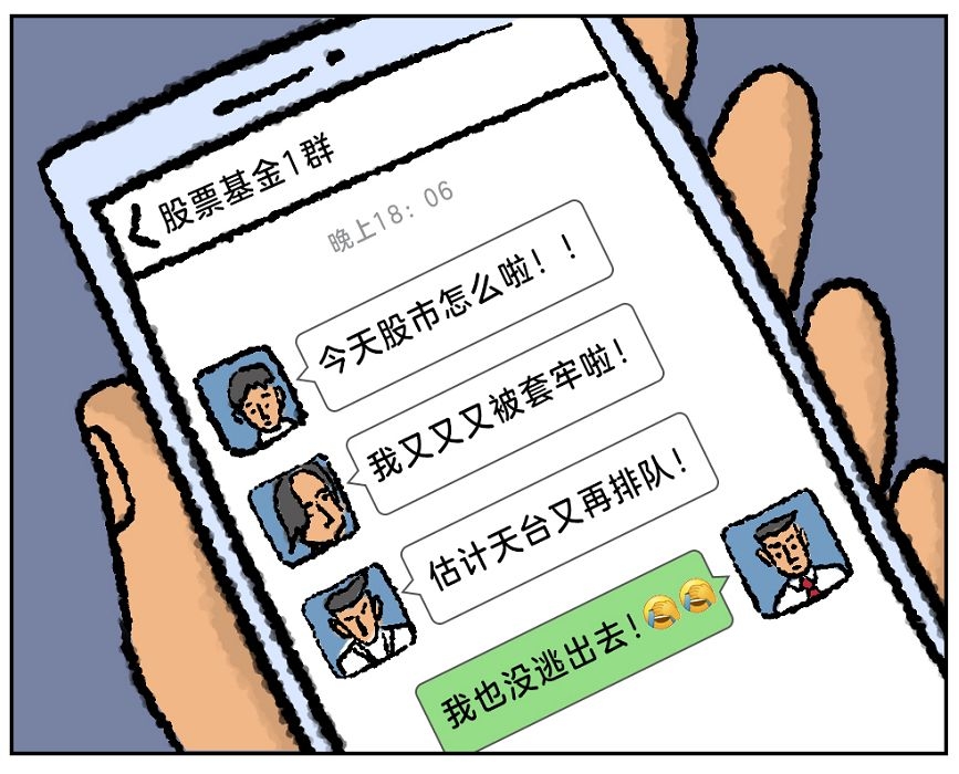 这次大跌没逃出去,下班后,基金经理们在股票群里开心地吐槽,不知道明天是涨还是跌。