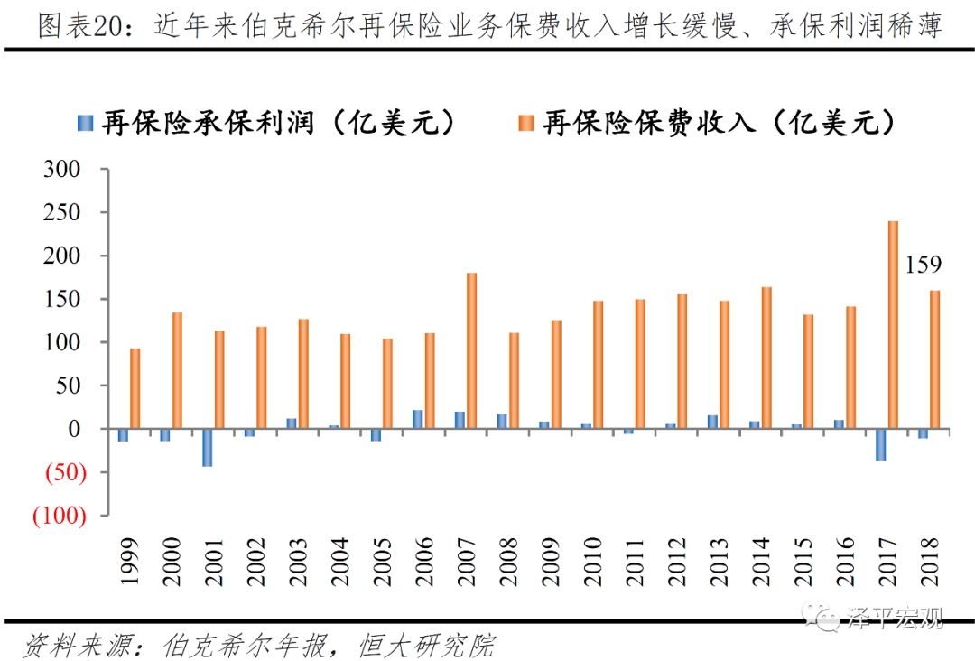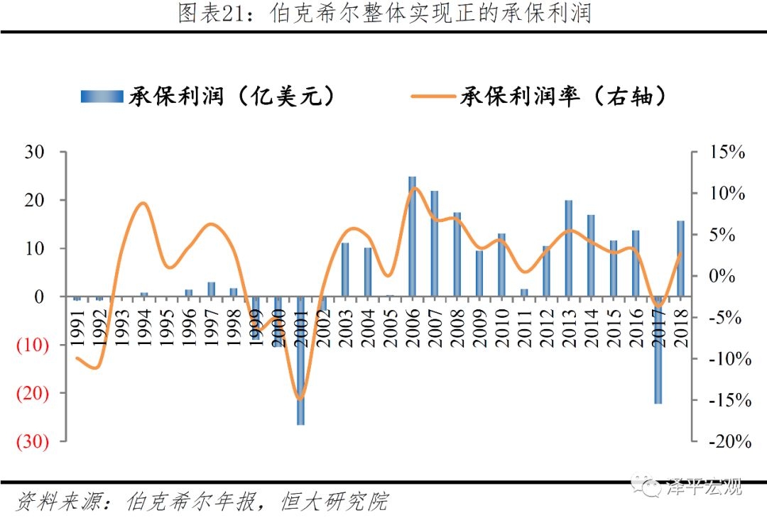但近十余年来,重大灾害的频率和规模不断增加,2005年卡特里娜飓风、2017年哈维和艾尔玛飓风均给伯克希尔再保险业务带来打击,承保利润微薄,2017年、2018年亏损高达37、11亿美元,巴菲特已经表示对再保险业务持悲观态度。