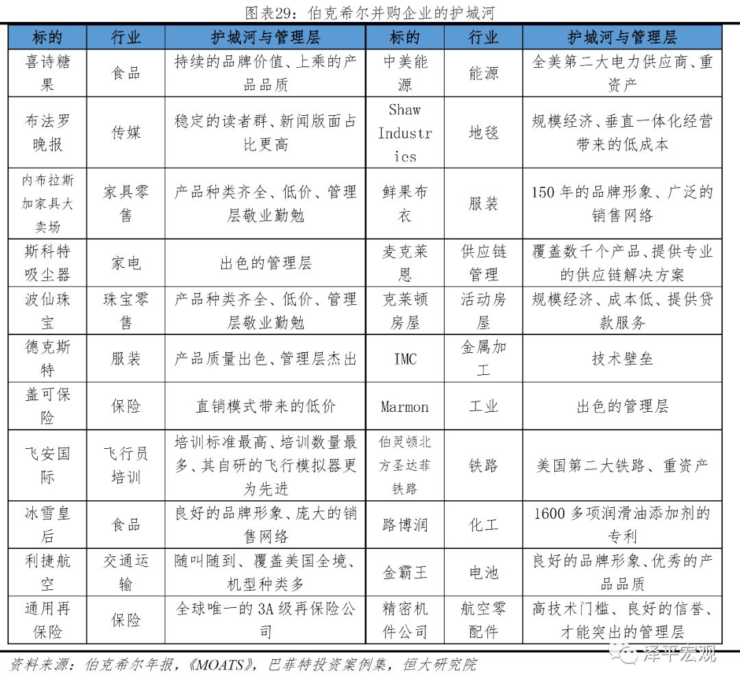 具体到标的选择,巴菲特首提并践行“护城河”理念。他将公司比作城堡,城堡的四周要有足够深的护城河,而且护城河中最好还有一群凶猛的鳄鱼或者食人鱼,让竞争者无法走进,形成一座坚不可摧的城堡。护城河可看作一种垄断资源,避免过度的市场竞争,赋予企业定价权,增厚利润。