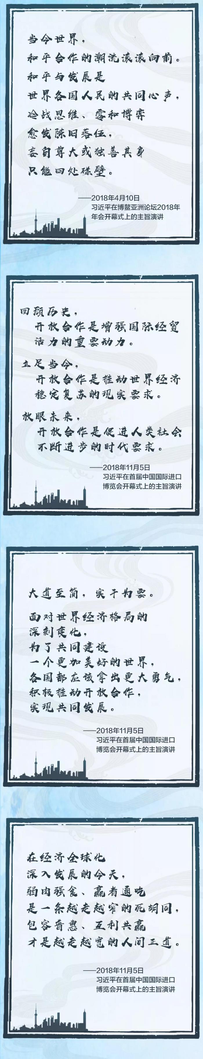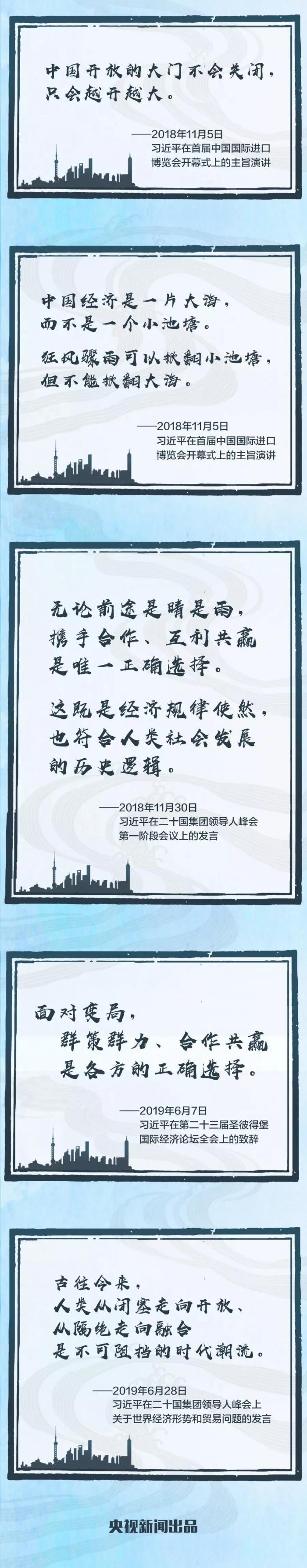 举办进博会是中国坚定支持贸易自由化和经济全球化、主动向世界开放市场的重大举措。今天,通过一张图,一起回顾习近平关于开放合作的“金句”↓↓↓