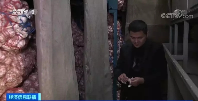 山东省金乡县文赢农贸有限公司经理 张明烁:老蒜是18年收的原始货,收购价格在每斤8毛左右,加上成本、存储费,一般在每斤1块多一点,我现在卖的是每斤2块6毛到2块8毛不等,利润挺可观。