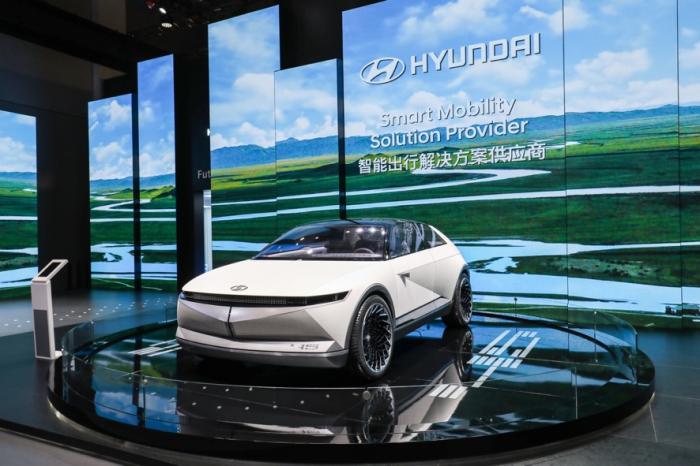 根据现代的规划,除了氢燃料电池汽车,纯电动汽车也是其新能源战略的重要路线之一。在本届进博会,现代展出了全新一代EV概念车45。