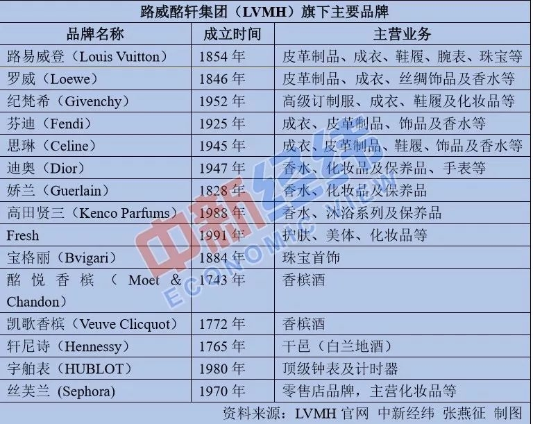 路威酩轩集团(LVMH)通过不断进行收购,目前品牌类超50个,此外还持股超70家公司。轩尼诗的白兰地酒、法国的迪奥香水、纪梵希订制服、丝芙兰零售店,西班牙的罗威时装、瑞士的Tag Heuer手表,美国的贝玲妃彩妆,再到意大利的芬迪手袋,都是其旗下的品牌。最近有报道称,LVMH将斥资145亿美元收购美国珠宝巨头蒂芙尼(Tiffany),如果收购完成,蒂芙尼将成为LVMH家族的“新成员”。