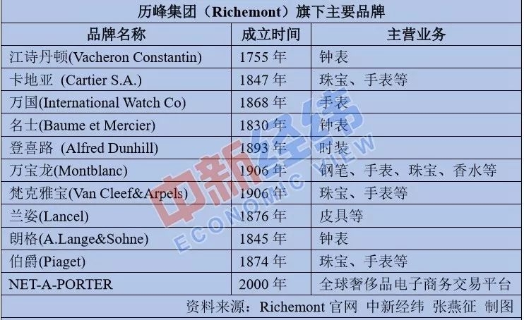 历峰集团在入股卡地亚(Cartier)的同时,还拥有乐福门的子公司登喜路与万宝龙的股份。通过不断的并购及资本运作,该集团成为了一家拥有十多个奢侈品牌的集团,现在所涉及的四个商业领域是:珠宝、手表、附件以及时装,积家、朗格和万国表都是他家的品牌。