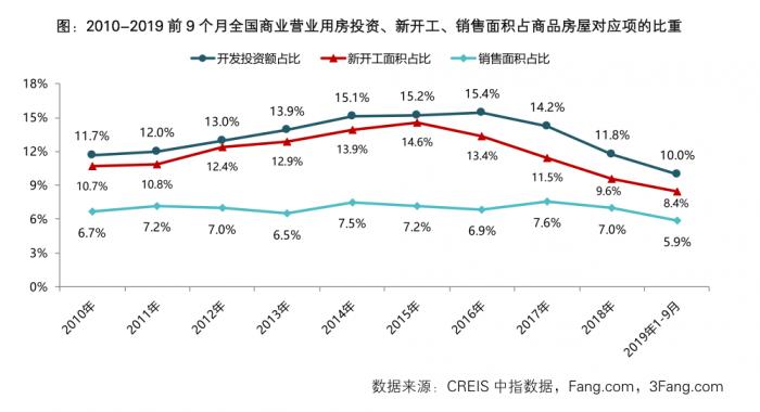 相关数据显示,2019年1-9月,全国商业营业用房开发投资额为9796亿元,同比下降8.0%。新开工方面,2019年1-9月,全国商业营业用房新开工面积为1.39亿平方米,同比下降3.3%。