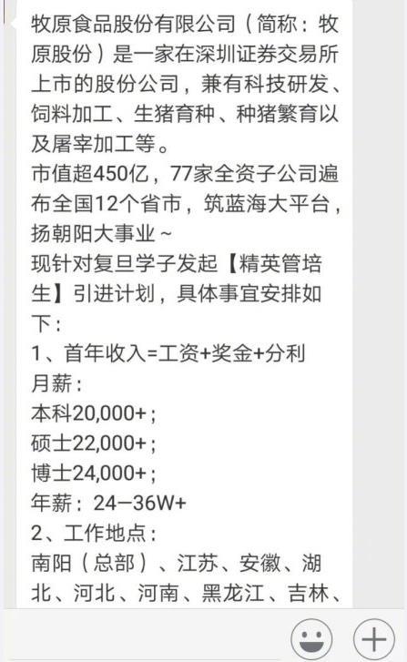 有媒体报道称,牧原股份针对知名高校,开出不菲薪酬:本科生20000元/月、硕士22000元/月、博士24000元/月。