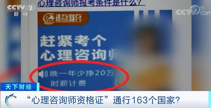 近年来,国家陆续取消了一大批职业资格许可和认定事项,“心理咨询师资格证”就在被取消的范围之中。但是眼下在网络上搜索“心理咨询师资格证”,立即就能出现大量的培训广告:“晚一年 少挣20万”“缺口巨大 高收入每小时100-1000元”。