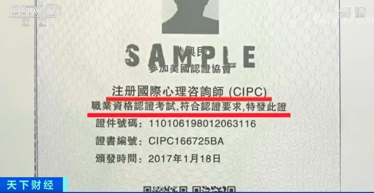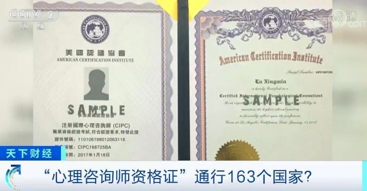 原来这家公司在美国主要是做职业技能培训,就是这样一家培训公司,到了中国就做起了心理咨询师的资格认证。一份培训结业证书,变成了国际专业的职业资格认证,培训公司变成了专业协会。