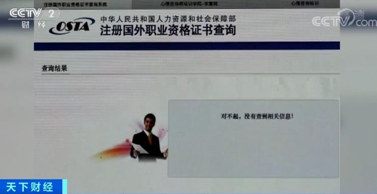 记者登录了国家人社部设立的外国职业资格证书查询平台,在“国际证书查询”一栏中,输入美国认证协会发放的证书编号后,却根本查询不到任何结果。