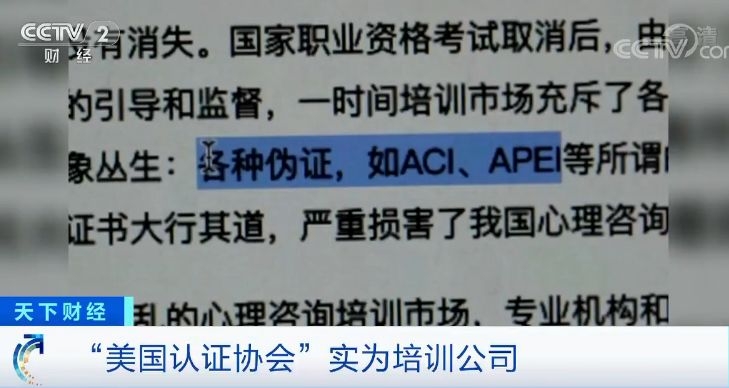 今年10月12日,我国最早成立的学术组织之一的中国心理学会联合中国科学院心理研究所、中国心理卫生协会、中国社会心理学会发布的一份共识声明中,认为包括ACI美国认证协会在内的所谓国际证书大行其道,严重损害了我国心理咨询行业的发展。