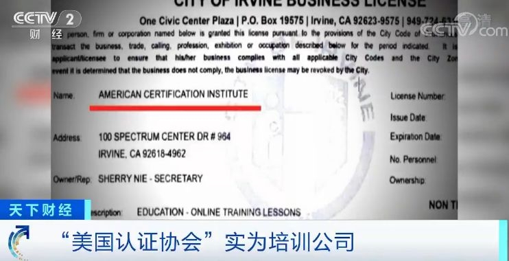 为什么会出现这样的情况?记者找到了负责组织认证考试,并颁发资格证书的美国认证协会中国总部。这位负责人告诉记者,他们只是负责对考试结果进行认证,并不负责培训。