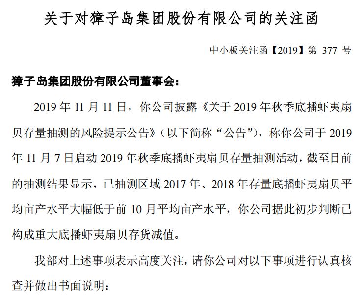 獐子岛的公告出来没多久,深交所就发了关注函。