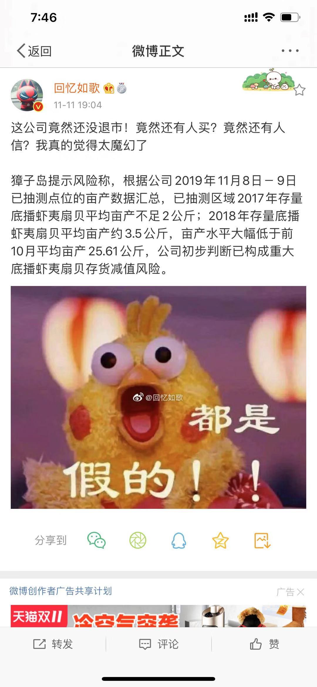 今晚(11日),被股民吐槽了几百次的上市公司獐子岛又火了。没想到“扇贝跑了”可以拍成连续剧,如果基金君没记错的话,这是2014年以来,该公司第四次跑了扇贝,不对,这一次獐子岛直接说是扇贝死了。