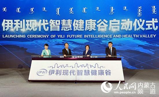 石泰峰书记(左二)、布小林主席(右二)、王莉霞书记(左一)、潘刚董事长(右一)共同启动“伊利现代智慧健康谷”。