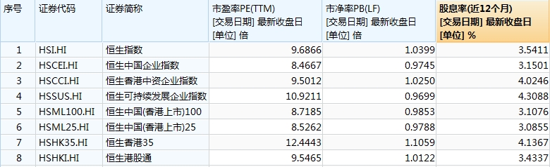 其实,这些资金不断买入港股也是有依据的。跌到目前这个位置,香港市场的估值来到了一个相对较低的水平。特别是其股息率,恒生指数各大分类指数的股息率都来到了3%以上,最高在的更达4.3%。
