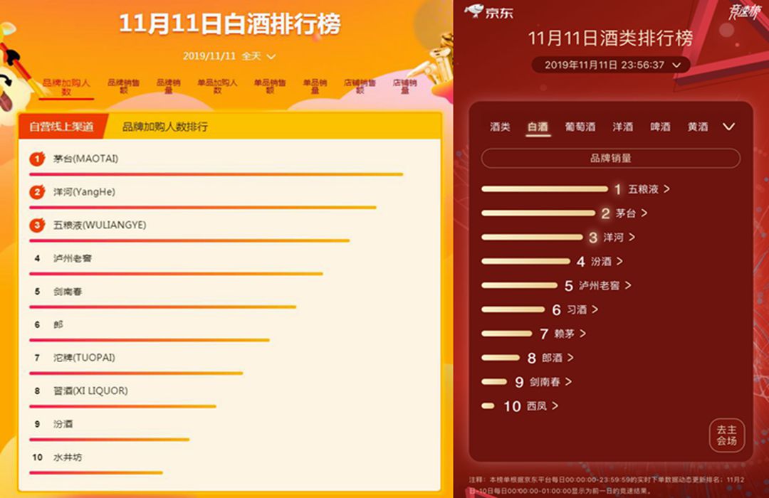 从上述排行榜单不难看出,白酒头部企业在这场电商狂欢中“厮杀激烈”。