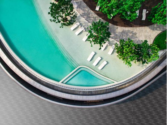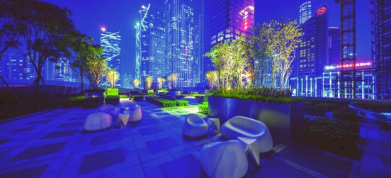 项目6楼平台作为6000㎡私人空中花园,据说仅面向52户业主开放,平均每户约120㎡私人花园。内含无边际泳池,整个中央大街景观可一览无遗。