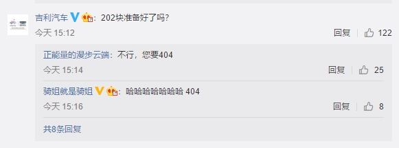 吉利汽车蹭热点的文案显然剑走偏锋,反而更加与众不同,直指“总花费202元”这一信息点,表示202块已经准备好了。