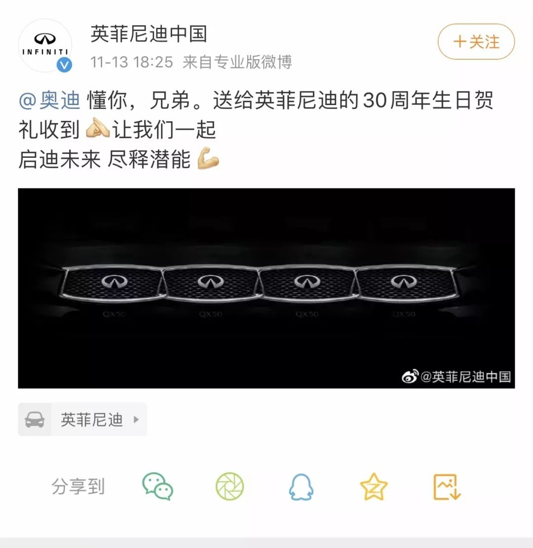 奥迪花202元,在朋友圈给英菲尼迪打广告?这些看热闹的车企笑了…