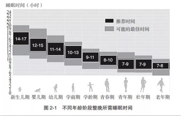 随着年龄的变化,人类对于睡眠的需求也不一样。婴儿期每天需要的睡眠时间是14个小时左右;学龄时期,基本上不再需要午睡,每天平均睡10个小时左右;青年和成年时期,每天一个人的睡眠平均需求是8个小时。到了老年,现在平均的睡眠时间在7-8小时左右。
