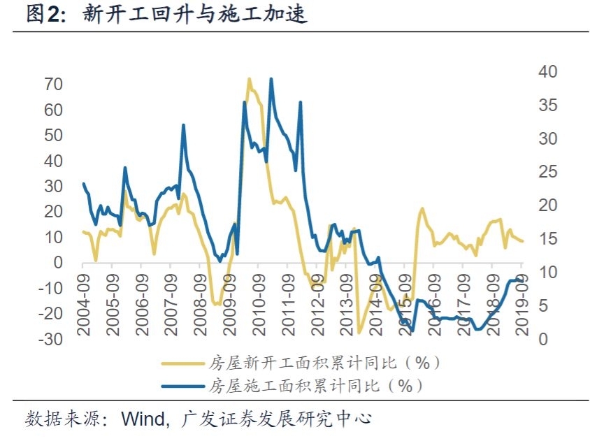 这一轮房地产施工回升的时点滞后于新开工;施工周期偏长,且竣工时点出现得更晚。