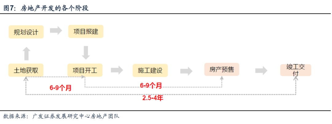 施工何时向竣工切换取决于施工周期的进展情况,一旦施工环节接近尾声,竣工加速就成为必然。按照房地产项目运行规律,正常情况下“新开工-竣工”周期耗时2-3年;而这轮施工周期相对需要更长时间。