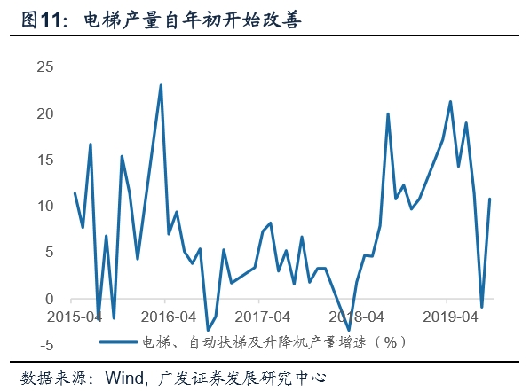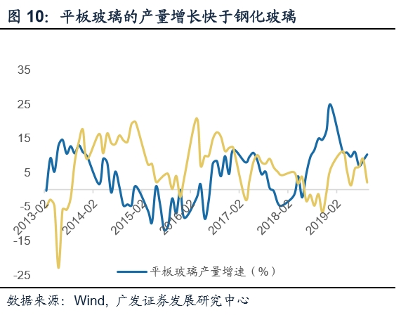 电梯产量好转始于今年一季度,市场往往认为电梯需求与旧城改造有关,但实际上旧城改造政策从二季度才开始实施,年初的电梯改善很可能缘于封顶改善。玻璃生产的量价好转始于去年末,特别是主要应用于地产竣工端的平板玻璃与应用于汽车生产的钢化玻璃相比,价格增长更明显,如果考虑到平板玻璃的供给格局更为分散、产品更为同质化、定价权更低,那么对这种价格表现唯一的解释就是需求加速改善。