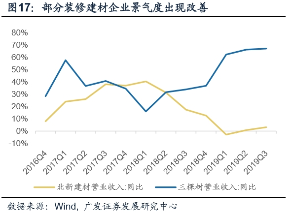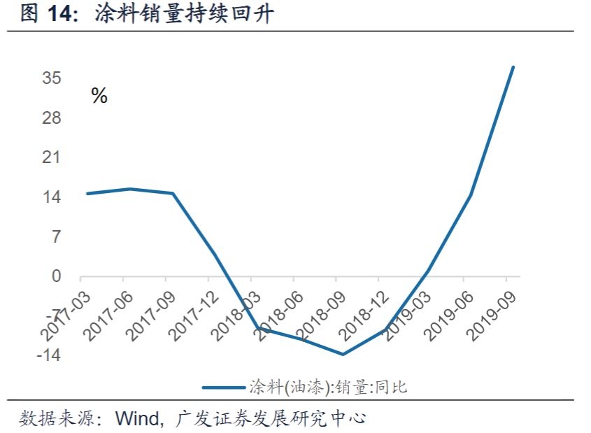 这几种产品的中观统计指标相对缺乏,我们用“PPI:水泥、石灰和石膏”与水泥价格指数两个指标之间的缺口作为石膏价格的观察指标;用涂料(油漆)销量作为涂料需求的观察指标。中观数据以及有代表性的上市公司数据显示,装修建材景气度在三季度出现显著好转。