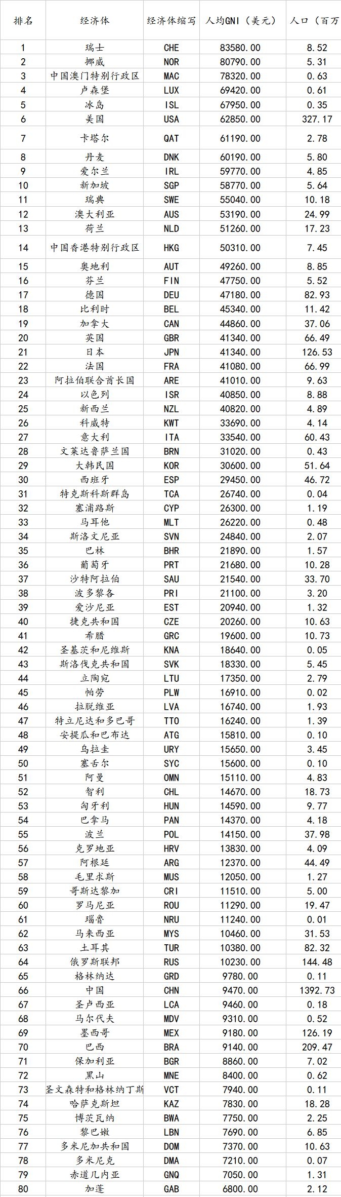 那么,对中国而言,目前近14亿人口,要占全球总人口的18.3%,超过目前被归类为高收入国家和地区的人口总和。如此庞大的人口体量,若要跻身高收入经济体的行列,在现有高收入经济体的排序不变情况下,将使得高收入经济体的人口比例达到34%,显然违背了二八定律。