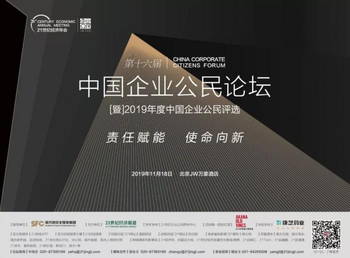 2019年11月18日,“第十六届中国企业公民论坛暨中国企业公民评选发布仪式”将在北京举行,今年的主题为“责任赋能,使命向新”。