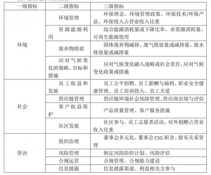 表:企业ESG评价指标