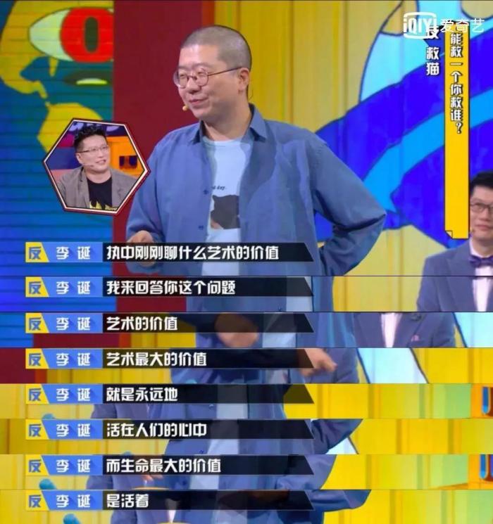 “捍卫生命的才是艺术的意义。” 最后用弱小可怜的猫咪,引申到生活中的每一个弱者,一下子打进了观众的心里! 直到选择救画的正方二辩——辩论大神黄执中出场时,将全场的情绪酝酿到了制高点! “画才是最弱的。”