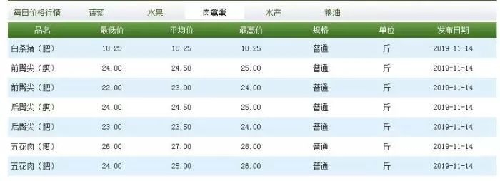 11月14日,北京新发地市场猪肉价格。来源:北京新发地官网
